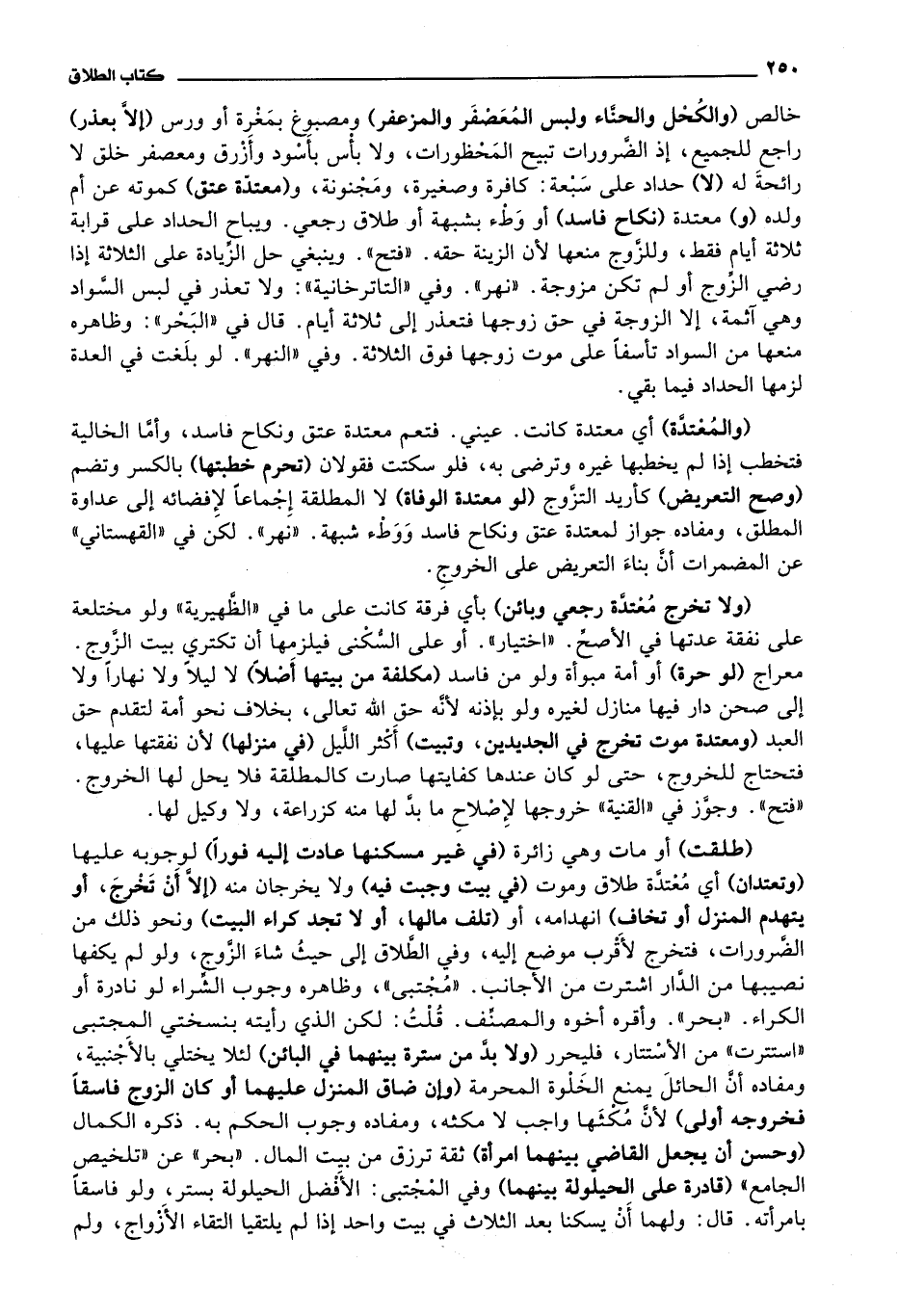 وجوز في القنية خروجها لاصلاح ما بد لها منه كزراعة، ولا وكيل لها (طلقت) أو مات وهي زائرة (في غير مسكنها عادت إليه فورا) لوجوبه عليها (وتعتدان) أي معتدة طلاق وموت (في بيت وجبت فيه) ولا يخرحان منه (إلا أن تخرج، أو يتهدم المنزل أو تخاف) انهدامه، أو (تلف مالها، أو لا تجد كراء البيت) ونحو ذلك من الضرورات، فتخرج لاقرب موضع إليه، وفي الطلاق إلى حيث شاء الزوج، ولو لم يكفها نصيبها من الدار اشترت من الاجانب.