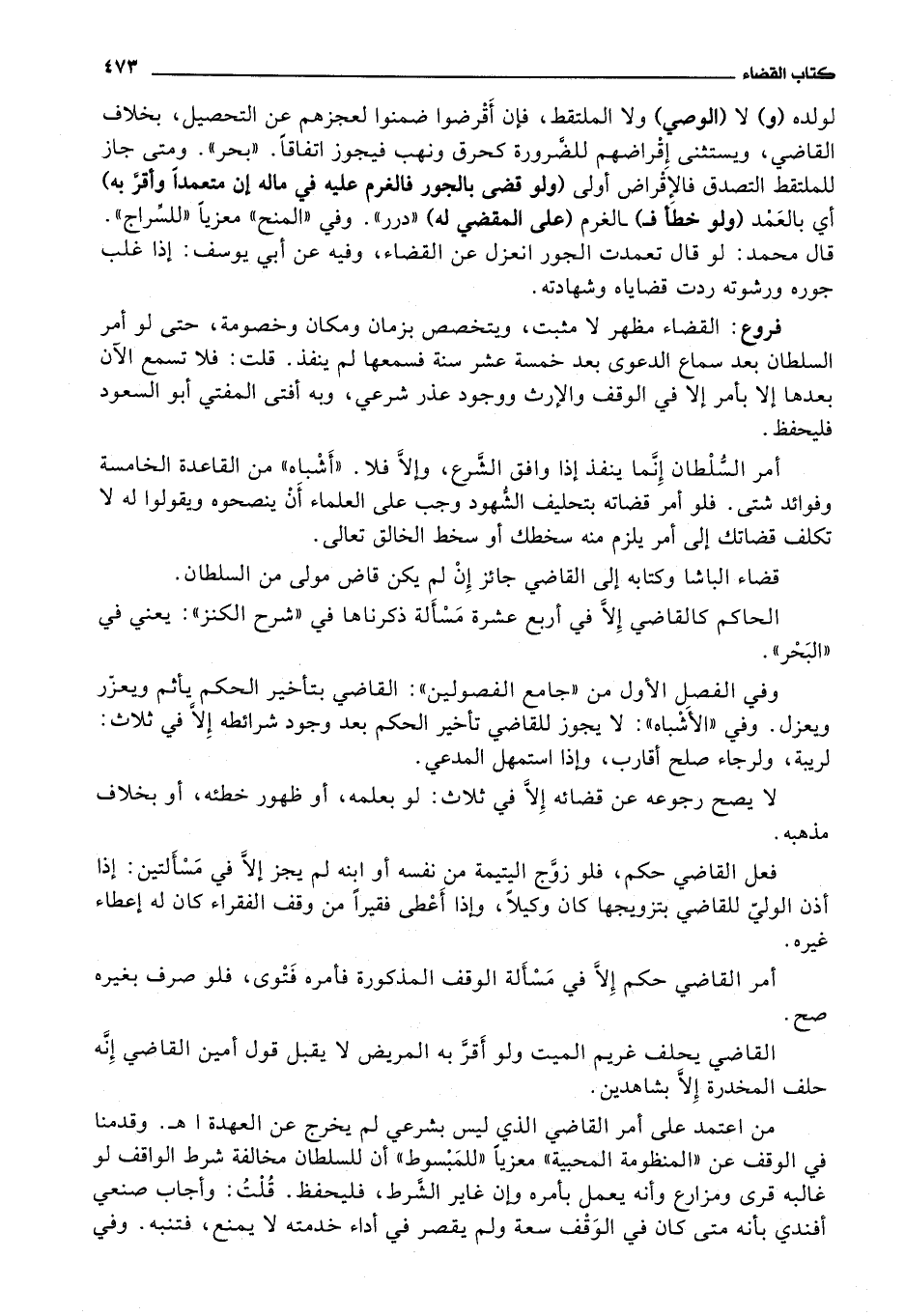 فروع: القضاء مظهر لا مثبت، ويتخصص بزمان ومكان وخصومة، حتى لو أمر السلطان بعد سماع الدعوى بعد خمسة عشر سنة فسمعها لم ينفذ.