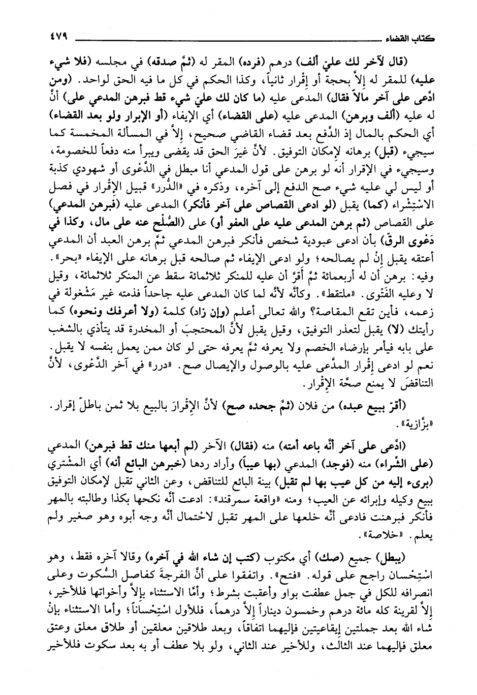 درر في آخر الدعوى، لان التناقض لا يمنع صحة الاقرار (أقر ببيع عبده) من فلان (ثم جحده صح) لان الاقرار بالبيع بلا ثمن باطل إقرار.