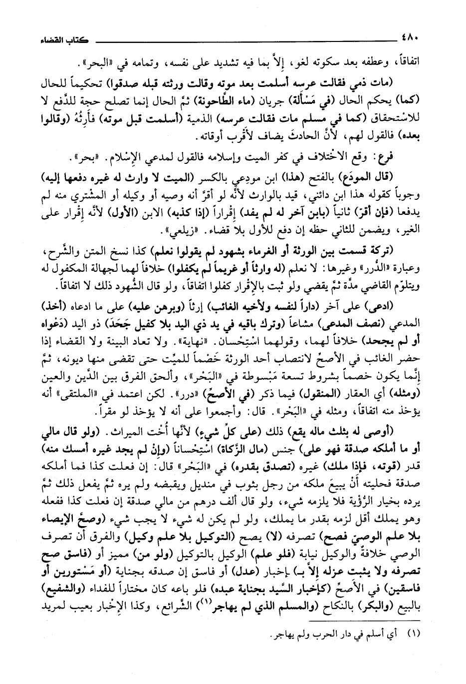 (مات ذمي فقالت عرسه أسلمت بعد موته وقالت ورثته قبله صدقوا) تحكيما للحال (كما) يحكم الحال (في مسألة) جريان (ماء الطاحونة) ثم الحال إنما تصلح حجة للدفع لا للاستحقاق (كما في مسلم مات فقالت عرسه) الذمية (أسلمت قبل موته) فأرثه (وقالوا بعده) فالقول لهم، لان الحادث يضاف لاقرب أوقاته.