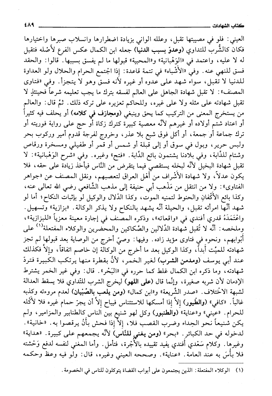 واعتمده قدري أفندي في واقعاته، وذكره المصنف في إجارة معينة معزيا للبزازية، وملخصه: أنه لا تقبل شهادة الدلالين والصكاكين والمحضرين والوكلاء المفتعلة على أبوابهم، ونحوه في فتاوى مؤيد زاده.