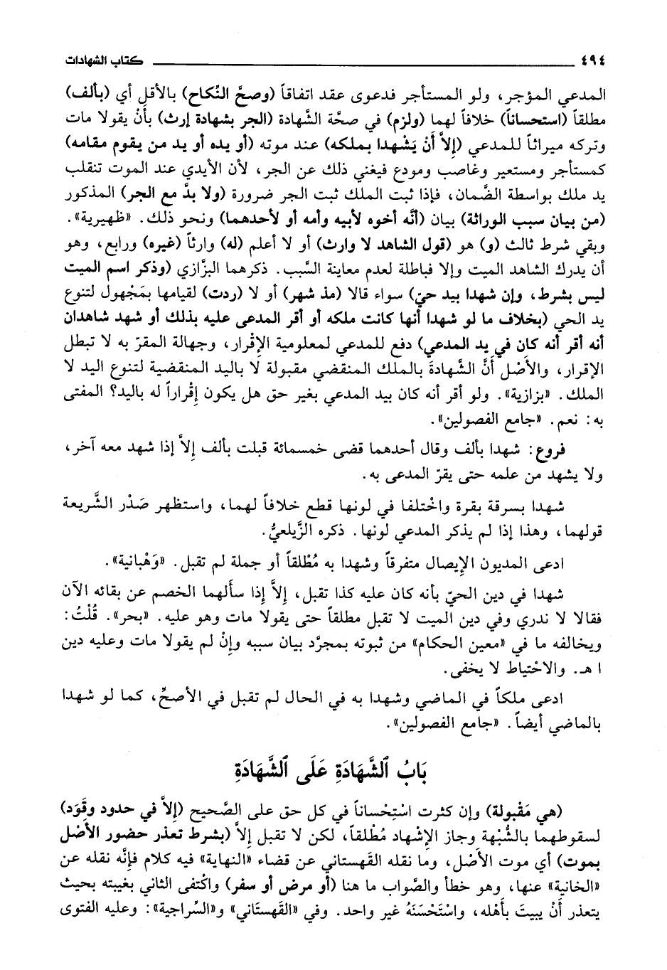 باب الشهادة على الشهادة (هي مقبولة) وإن كثرت استحسانا في كل حق على الصحيح (إلا في حدود وقود) لسقوطهما بالشبهة وجاز الاشهاد مطلقا، لكن لا تقبل إلا (بشرط تعذر حضور الاصل بموت) أي موت الاصل، وما نقله القهستاني عن قضاء النهاية فيه كلام فإنه نقله عن الخانية عنها، وهو خطأ والصواب ما هنا (أو مرض أو سفر) واكتفى الثاني بغيبته بحيث يتعذر أن يبيت بأهله،