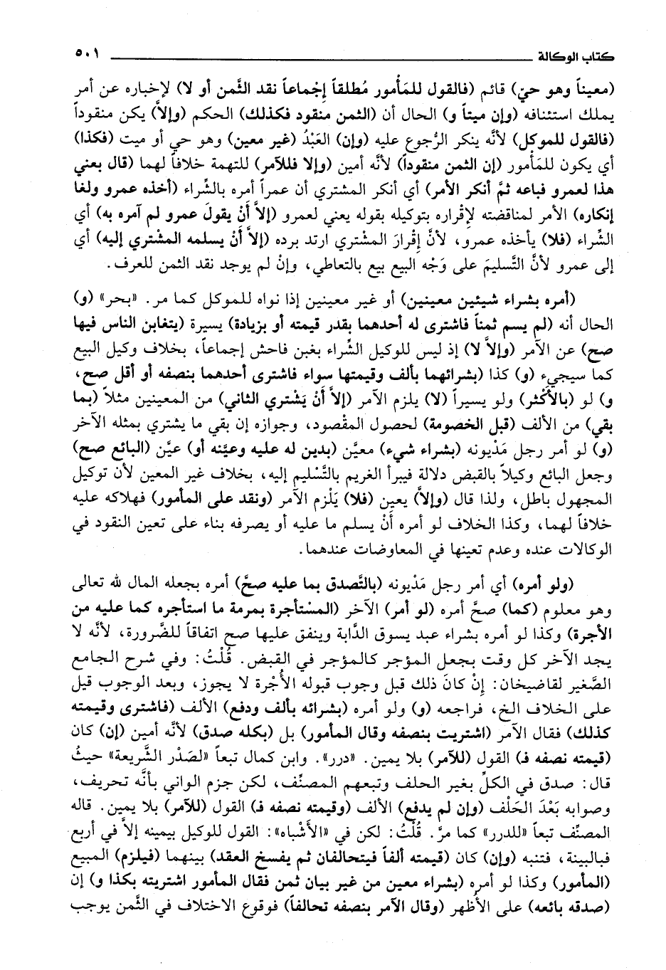 بحر (و) الحال أنه (لم يسم ثمنا فاشترى له أحدهما بقدر قيمته أو بزيادة) يسيره (يتغابن الناس فيها صح) عن الآمر (وإلا لا) إذ ليس للوكيل الشراء بغبن فاحش إجماعا، بخلاف وكيل البيع كما سيجئ (و) كذا (بشرائهما بألف وقيمتها سواء فاشترى أحدهما بنصفه أو أقل صح، و) لو (بالاكثر) ولو يسيرا (لا) يلزم الآمر (إلا أن يشتري الثاني) من المعينين مثلا (بما بقي) من الالف (قبل الخصومة) لحصول المقصود، وجوازه إن بقي ما يشتري بمثله الآخر (و) لو أمر رجل مديونه (بشراء شئ) معين (بدين له عليه وعينه أو) عين (البائع صح) وجعل البائع وكيلا بالقبض دلالة فيبرأ الغريم بالتسليم إليه، بخلاف غير المعين لان توكيل المجهول باطل، ولذا قال (وإلا) يعين (فلا) يلزم الآمر (ونقد على المأمور) فهلاكه عليه خلافا لهما، وكذا الخلاف لو أمره أن يسلم ما عليه أو يصرفه بناء على تعين النقود في الوكالات عنده وعدم تعينها في المعاوضات عندهما.