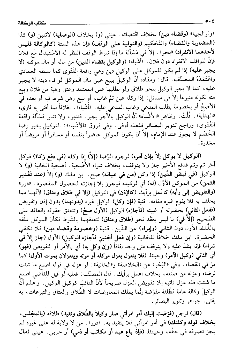 قال: ومفاده أن الوكيل يبيع عين مال الموكل لو فاء دينه لا يجبر عليه، كما لا يجبر الوكيل بنحو طلاق ولو بطلبها على المعتمد وعتق وهبة من فلان وبيع منه لكونه متبرعا إلا في