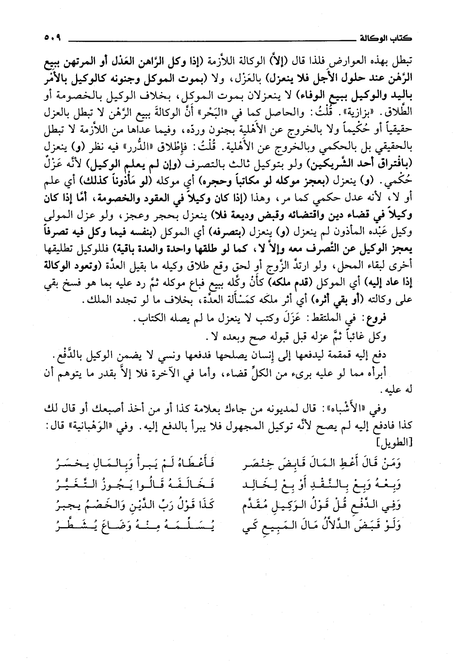 (و) ينعزل (بعجز موكله لو مكاتبا وحجره) أي موكله (لو مأذونا كذلك) أي علم أو لا، لانه عدل حكمي كما مر، وهذا (إذا كان وكيلا في العقود والخصومة، أما إذا كان وكيلا في قضاء دين واقتضائه وقبض وديعة فلا) ينعزل بحجر وعجز، ولو عزل المولى وكيل عبده المأذون لم ينعزل (و) ينعزل (بتصرفه) أي الموكل (بنفسه فيما وكل فيه تصرفا يعجز الوكيل عن التصرف معه وإلا لا، كما لو طلقها واحدة والعدة باقية) فللوكيل تطليقها أخرى لبقاء المحل، ولو ارتد الزوج أو لحق وقع طلاق وكيله ما بقيل العدة (وتعود الوكالة إذا عاد إليه) أي الموكل (قدم ملكه) كأن وكله ببيع فباع موكله ثم رد عليه بما هو فسخ بقي على وكالته (أو بقي أثره) أي أثر ملكه كمسألة العدة، بخلاف ما لو تجدد الملك.