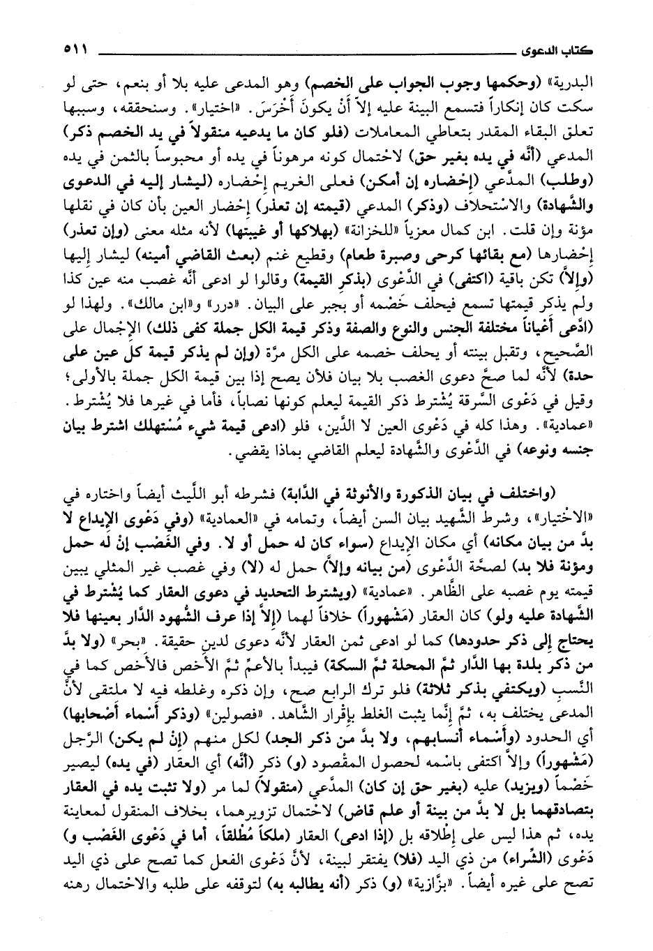 البدرية (وحكمها وجوب الجواب على الخصم) وهو المدعي عليه بلا أو بنعم، حتى لو سكت كان إنكارا فتسمع البينة عليه إلا أن يكون أخرس.