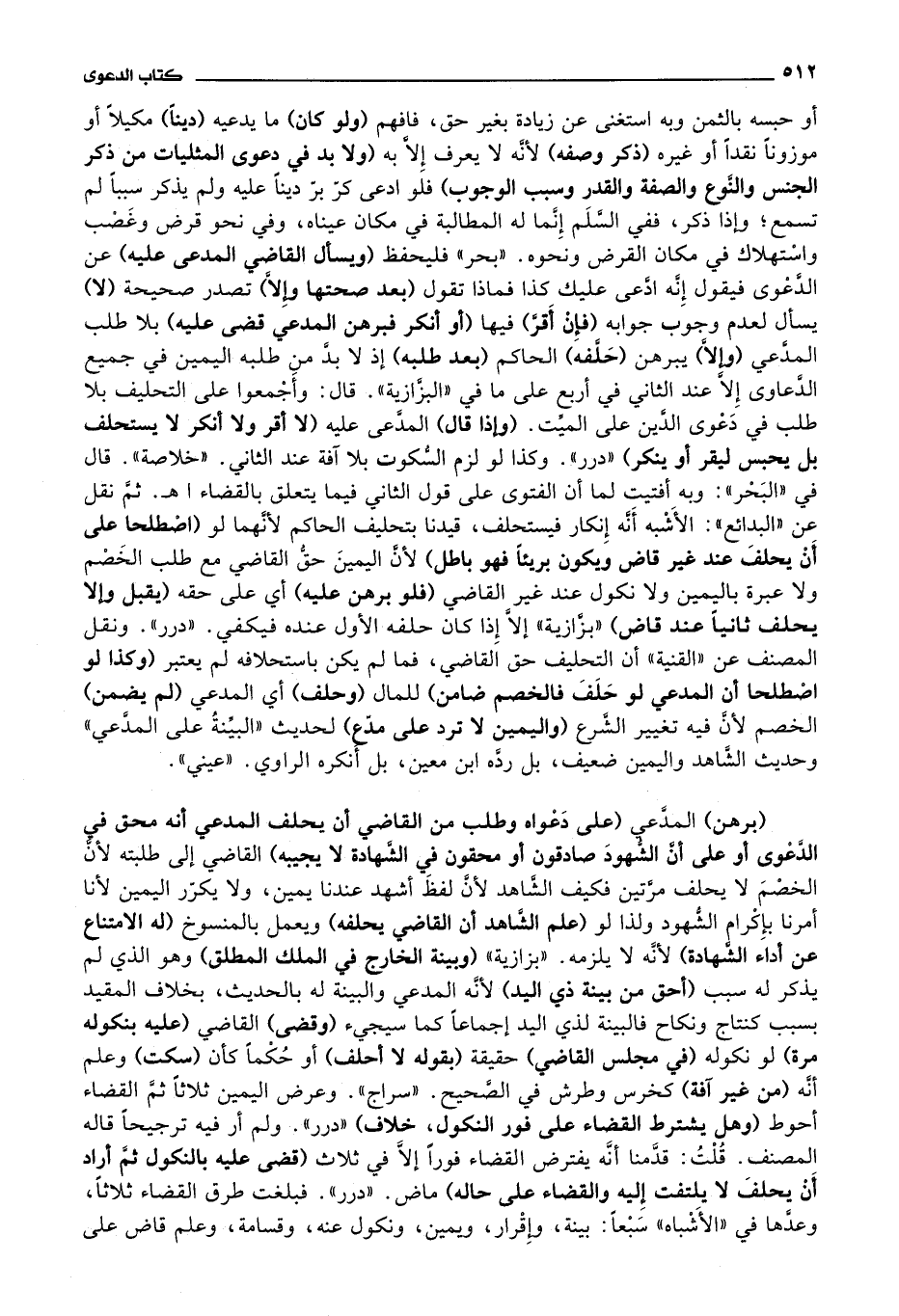 ثم نقل عن البدائع: الاشبه أنه إنكار فيستحلف، قيدنا بتحليف الحاكم لانهما لو (اصطلحا على أن يحلف عند غير قاض ويكون برئيا فهو باطل) لان اليمين حق القاضي مع طلب الخصم ولا عبرة باليمين ولا نكول عند غير القاضي (فلو برهن عليه) أي على حقه (يقبل وإلا يحلف ثانيا عند قاض) بزازية إلا إذا كان حلفه الاول عنده فيكفي.