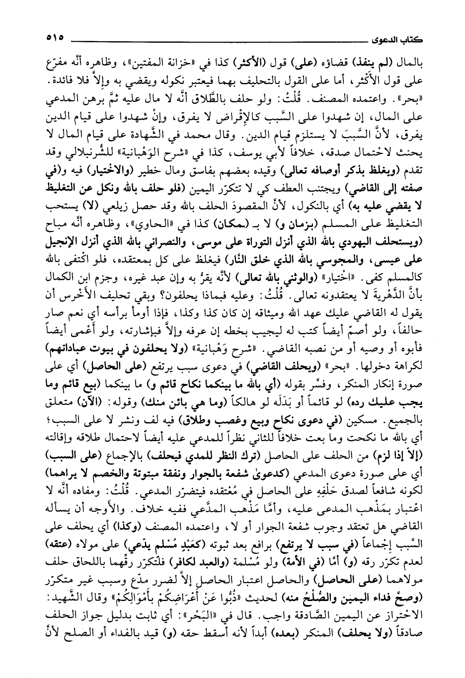 قلت: ولو حلف بالطلاق أنه لا مال عليه ثم برهن المدعي على المال، إن شهدوا على السبب كالاقراض لا يفرق، وإن شهدوا على قيام الدين يفرق، لانه السبب لا يستلزم قيام الدين.