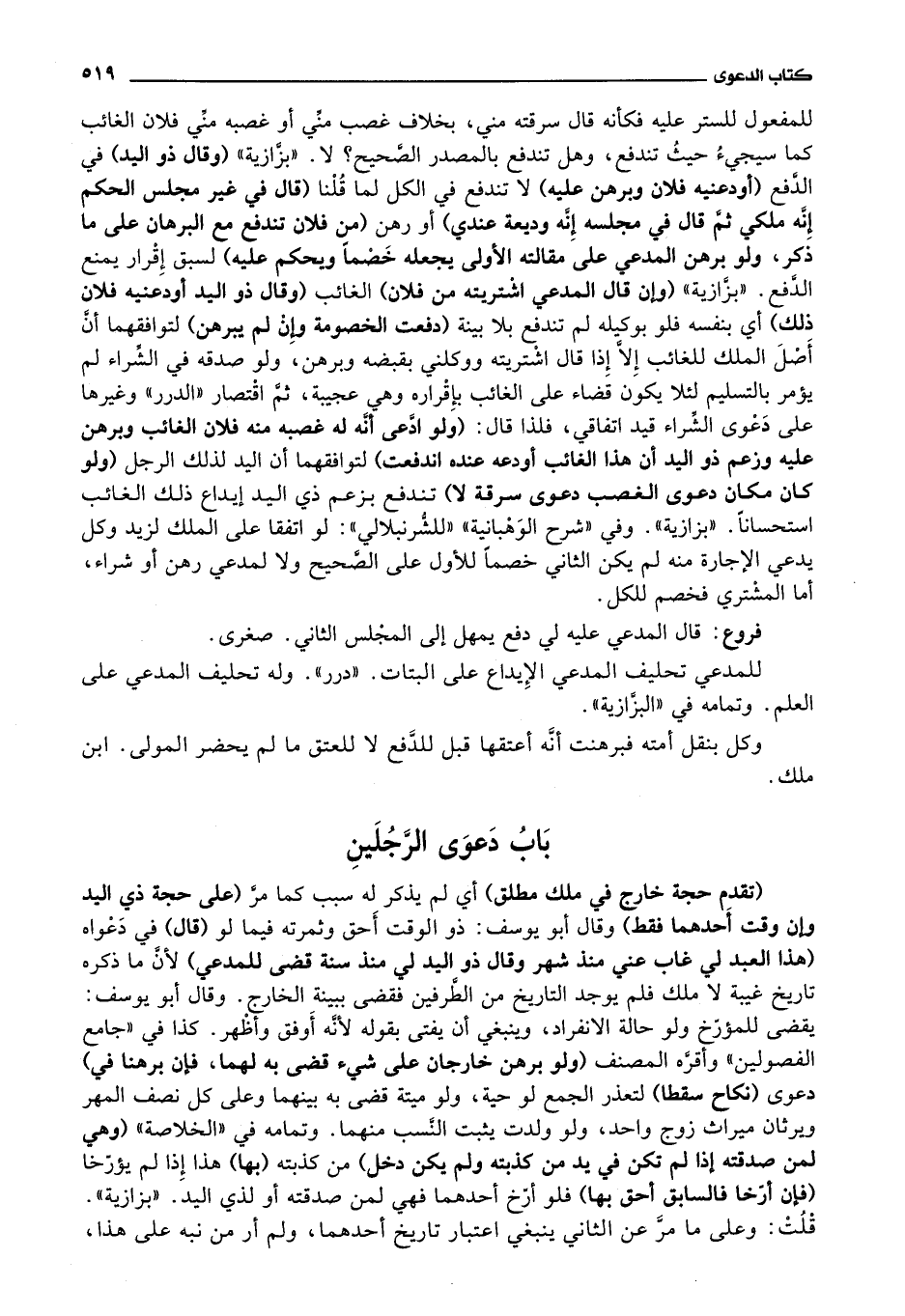 باب دعوى الرجلين (تقدم حجة خارج في ملك مطلق) أي لم يذكر له سبب كما مر (على حجة ذي اليد وإن