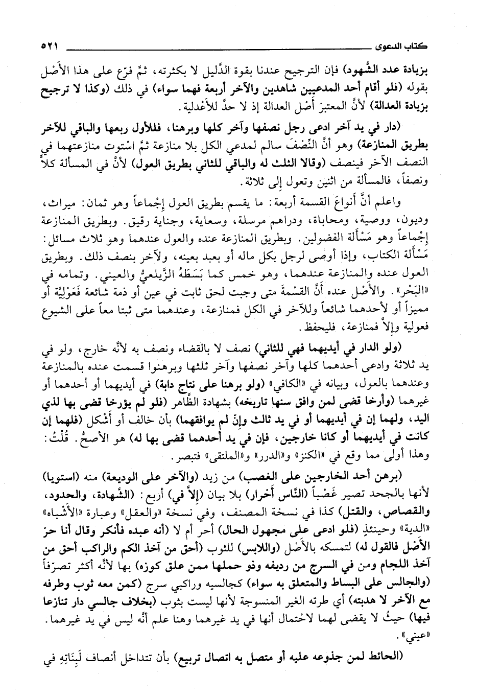 الغصب) من زيد (والآخر على الوديعة) منه (استويا) لانها بالجحد تصير غصبا (الناس أحرار) بلا بيان (إلا في) أربع: (الشهادة والحدود، والقصاص، والقتل) كذا في نسخة المصنف، وفي نسخة والعقل وعبارة الاشباه الدية وحينئذ (فلو ادعى على مجهول الحال) أحر أم لا (أنه عبده فأنكر وقال أنا حر الاصل فالقول له) لتمسكه بالاصل (واللابس) للثوب (أحق من آخذ الكم والراكب أحق من آخذ اللجام ومن في السرج من رديفه وذو حملها ممن علق كوزه) بها لانه أكثر تصرفا (والجالس على البساط والمتعلق به سواء) كجالسيه وراكبي سرج (كمن معه ثوب وطرفه مع الآخر لا هدبته) أي طرته الغير المنسوجة لانها ليست بثوب (بخلاف جالسي دار تنازعا فيها) حيث لا يقضى لهما لاحتمال أنها في يد غيرهما