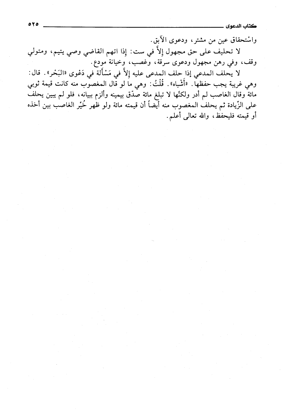 لا تحليف على حق مجهول إلا في ست: إذا اتهم القاضي وصي يتيم، ومتولي وقف، وفي رهن مجهول ودعوى سرقة، وغصب، وخيانة مودع.