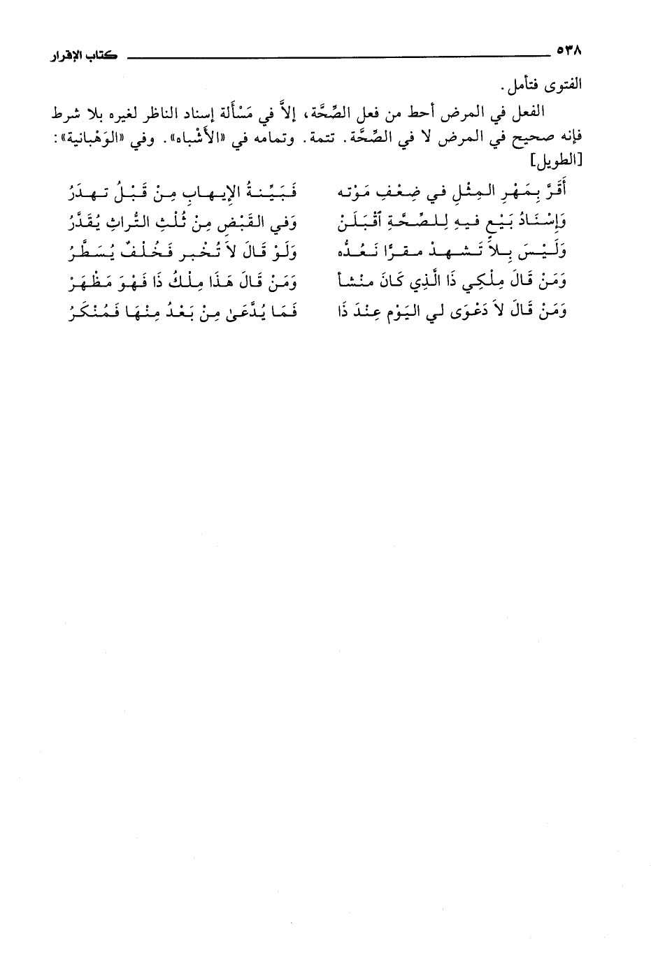 الفعل في المرض أحط من فعل الصحة، إلا في مسألة اسناد الناظر لغيره بلا شرط فإنه صحيح في المرض لا في الصحة.