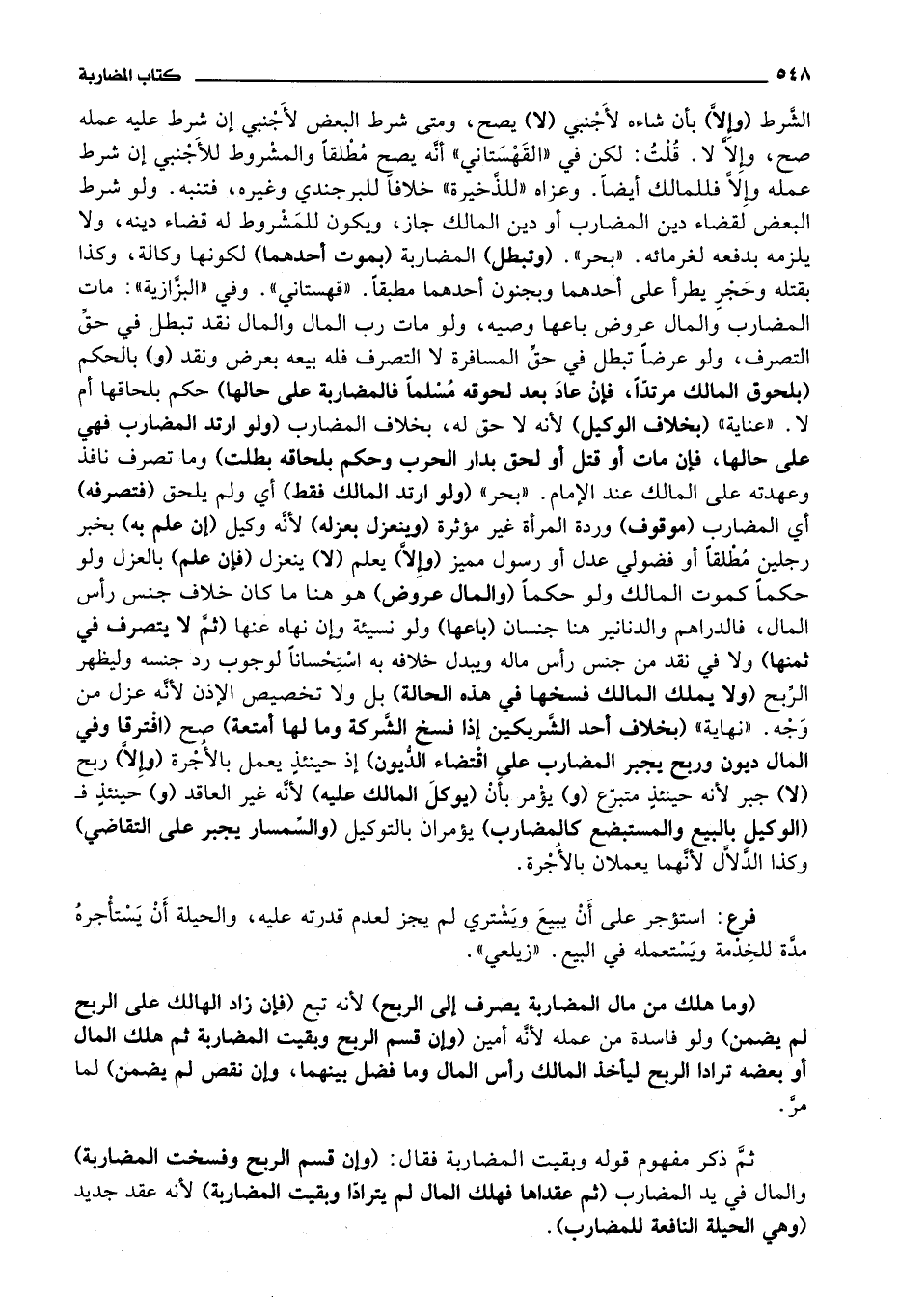 وفي البزازية: مات المضارب والمال عروض باعها وصيه، ولو مات رب المال والمال نقد تبطل في حق التصرف، ولو عرضا تبطل في حق المسافرة لا التصرف فله بيعه بعرض ونقد (و) بالحكم (بلحوق المالك مرتدا، فإن عاد بعد لحوقه مسلما فالمضاربة على حالها) حكم بلحاقها أم لا.