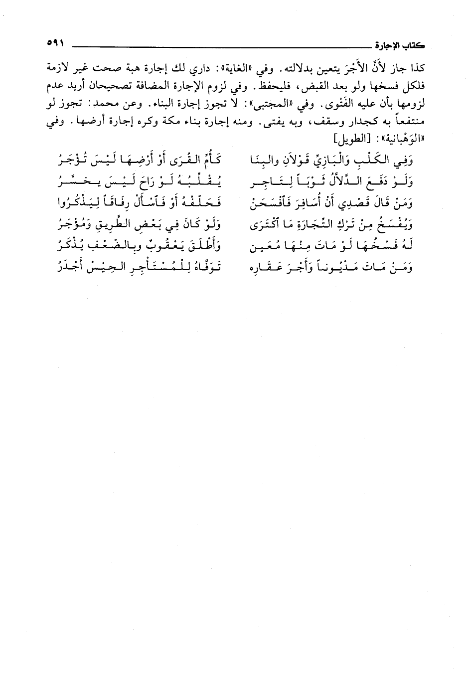 وفي الوهبانية: وفي الكلب والبازي قولان والبنا * كأم القرى أو أرضها ليس تؤجر