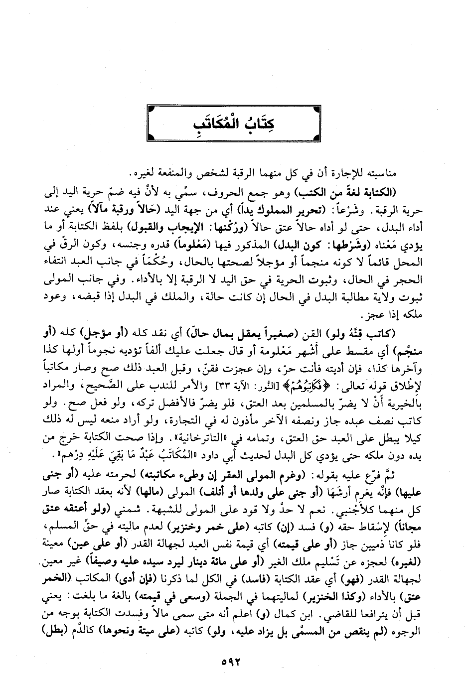 (الكتابة لغة من الكتب) وهو جمع الحروف، سمي به لان فيه ضم حرية اليد إلى حرية الرقبة.