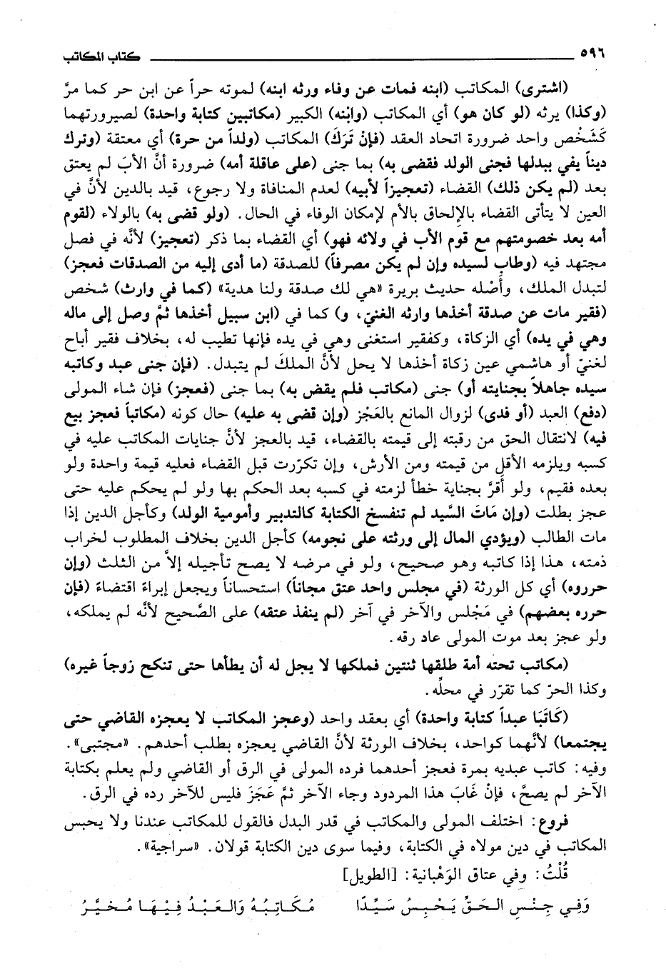 قلت: وفي عتاق الوهبانية: وفي جنس الحق يحبس سيدا * مكاتبه والعبد فيها مخير