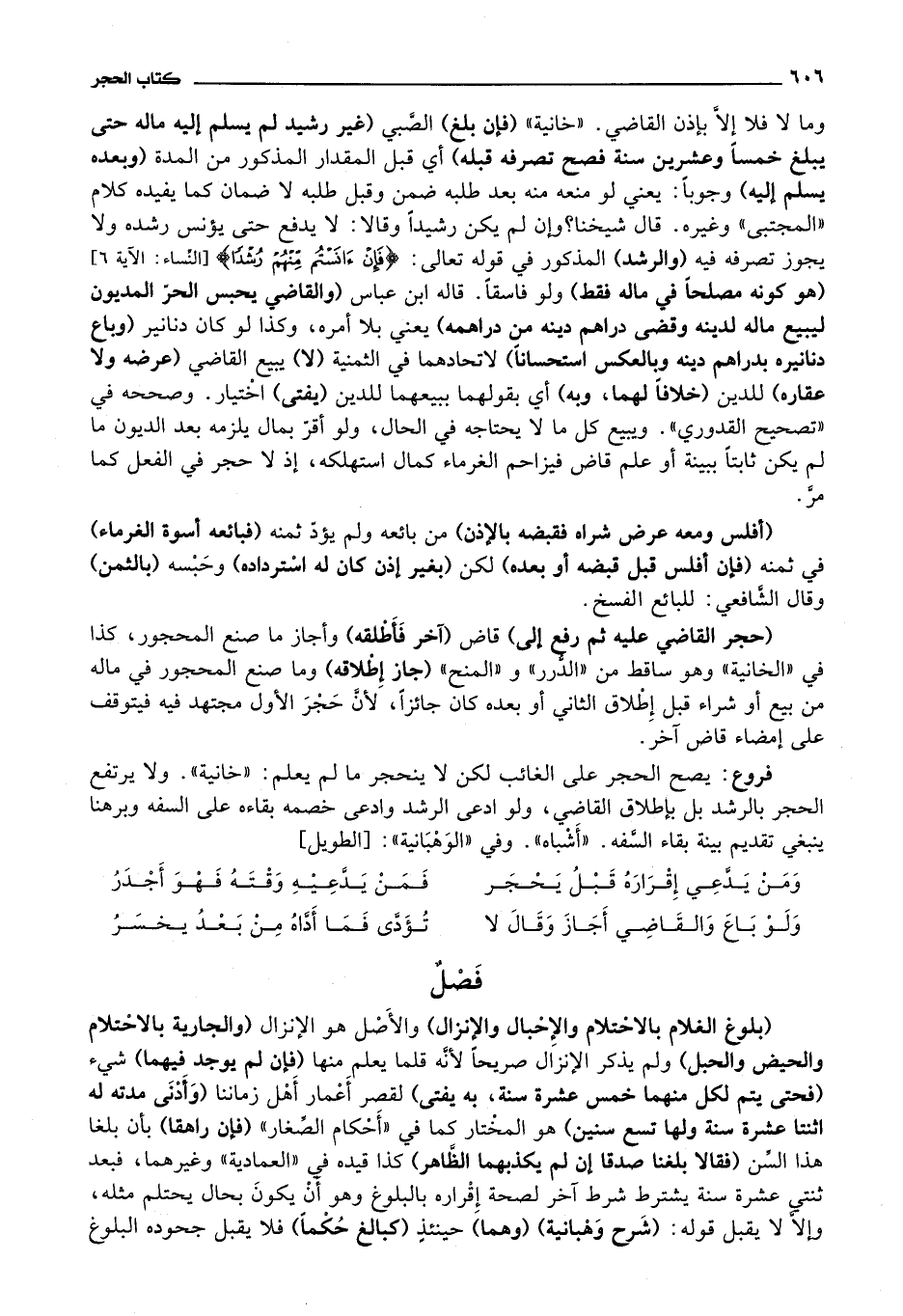 ولا يرتفع الحجر بالرشد بل بإطلاق القاضي، ولو ادعى الرشد وادعى خصمه بقاءه على السفه وبرهنا ينبغي تقديم بينة بقاء السفه.