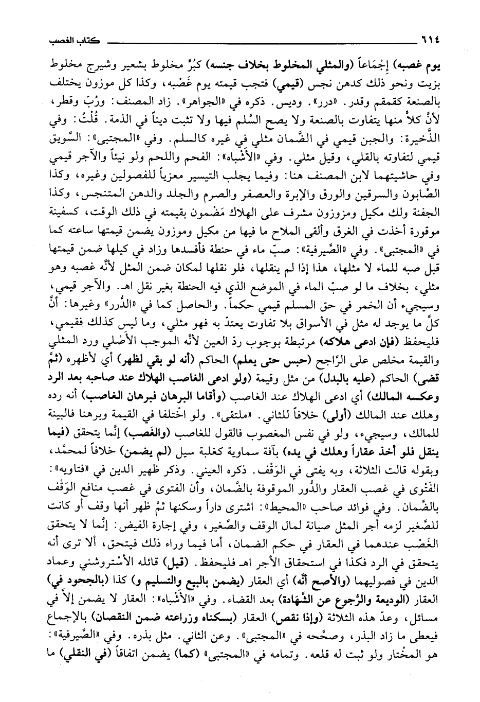 وفي الاشباه: الفحم واللحم ولو نيئا والآجر قيمي وفي حاشيتهما لابن المصنف هنا: وفيما يجلب التيسير معزيا للفصولين وغيره، وكذا الصابون والسرقين والورق والابرة والعصفر والصرم والجلد والدهن المتنجس، وكذا الجفنة ولك مكيل ومزوزون مشرف على الهلاك مضمون بقيمته في ذلك الوقت، كسفينة موقورة أخذت في الغرق وألقى الملاح ما فيها من مكيل وموزون يضمن قيمتها ساعته كما في المجتبى.