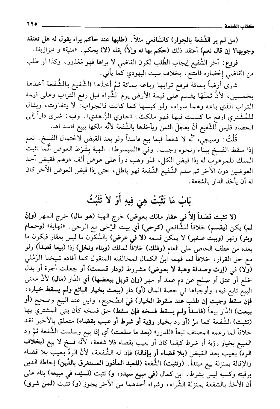 باب ما تثبت هي فيه أو لا تثبت (لا تثبت قصدا إلا في عقار مالك بعوض) خرج الهبة (هو مال) خرج المهر (وإن لم) يكن (يقسم) خلافا للشافعي (كرحى) أي بيت الرحى مع الرحى.