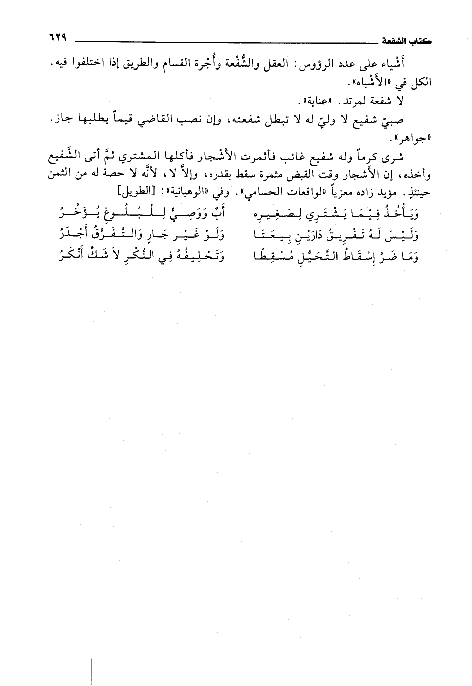 أشياء على عدد الرؤوس: العقل والشفعة وأجرة القسام والطريق إذا اختلفوا فيه.