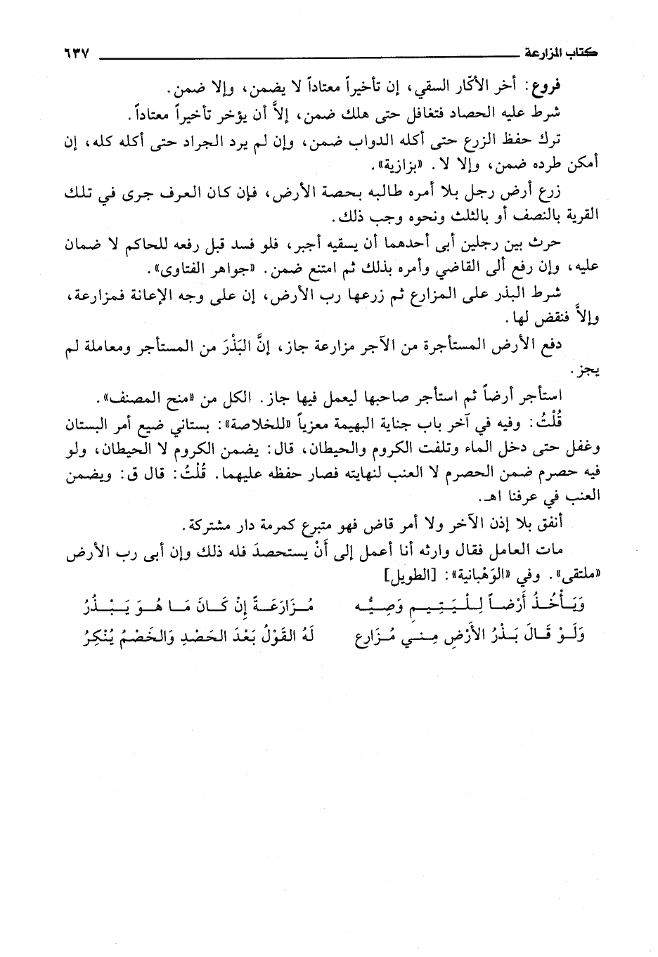 حرث بين رجلين أبى أحدهما أن يسقيه أجبر، فلو فسد قبل رفعه للحاكم لا ضمان عليه، وإن رفع ألى القاضي وأمره بذلك ثم امتنع ضمن.