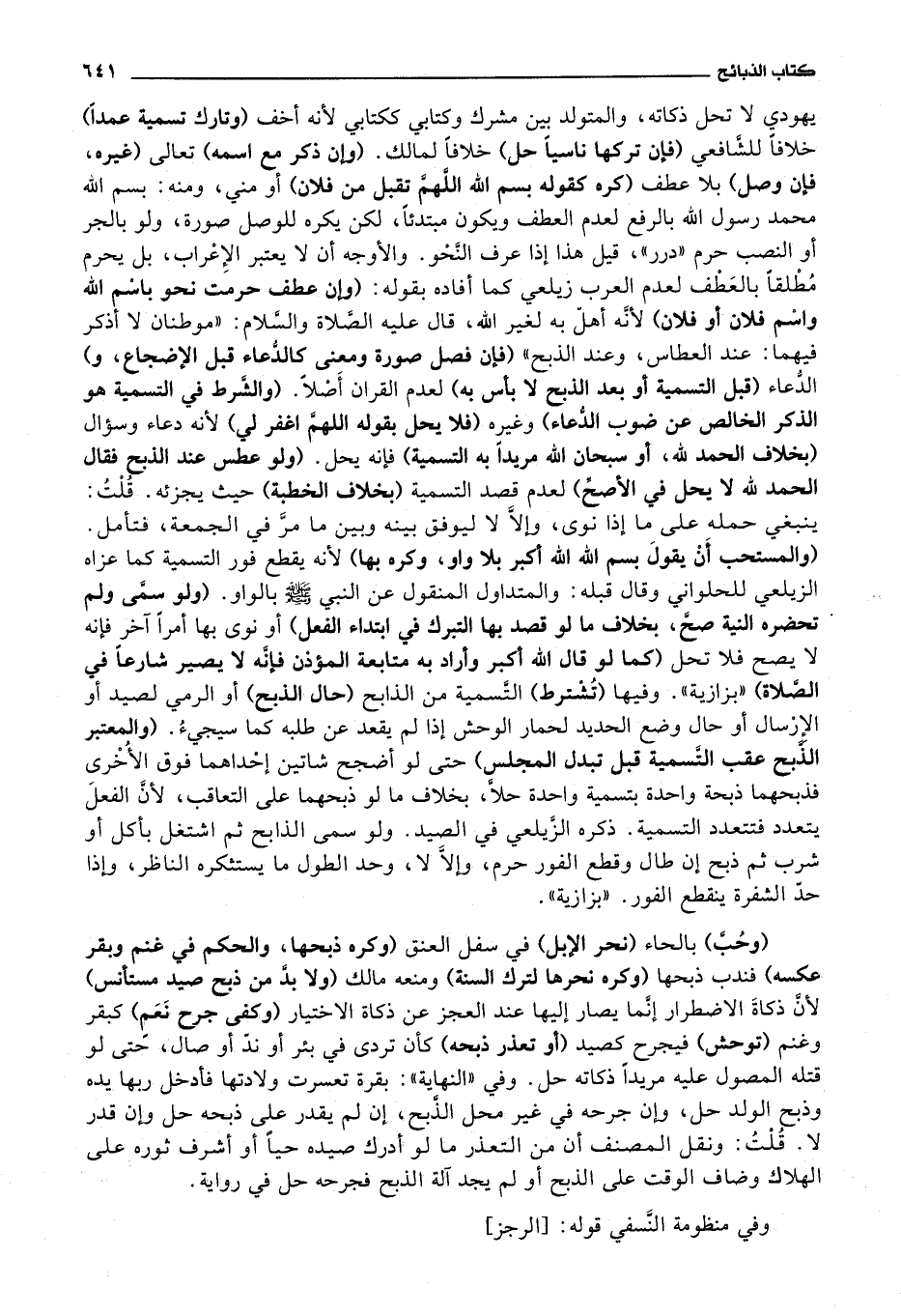 وفي منظومة النصفي قوله: