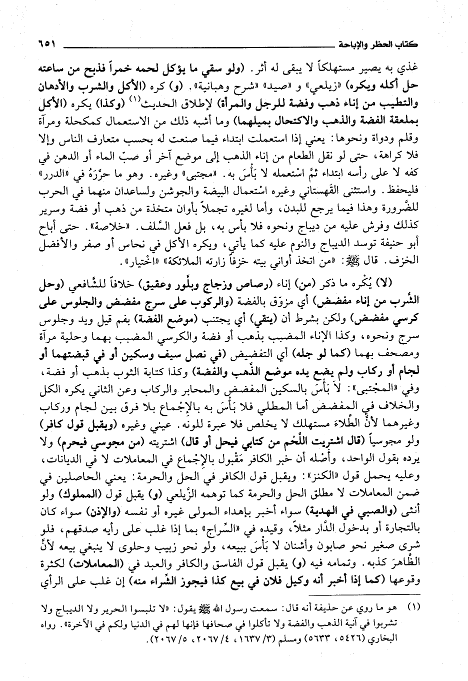 حتى أباح أبو حنيفة توسد الديباج والنوم عليه كما يأتي، ويكره الاكل في نحاس أو صفر والافضل الخزف.