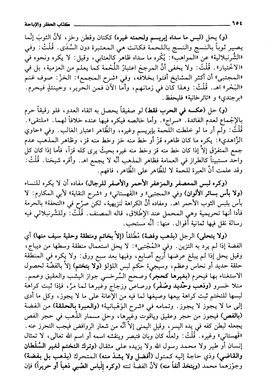 قلت: وفي الشرنبلالية عن المواهب: يكره ما سداه ظاهر كالعتابي، وقيل: لا يكره ونحوه في الاختيار.