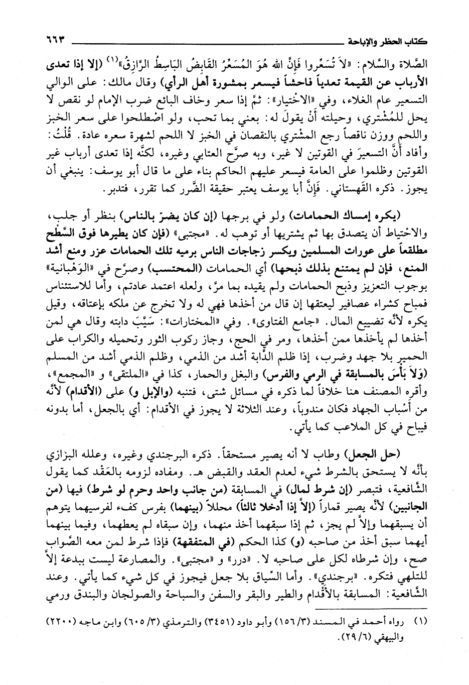 الصلاة والسلام: لا تسعروا فإن الله هو المسعر القابض الباسط الرازق (إلا إذا تعدى الارباب عن القيمة تعديا فاحشا فيسعر بمشورة أهل الرأي) وقال مالك: على الوالي التسعير عام الغلاء، وفي الاختيار: ثم إذا سعر وخاف البائع ضرب الامام لو نقص لا يحل للمشتري، وحيلته أن يقول له: