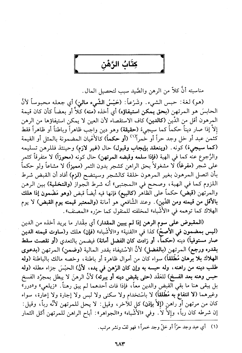 وشرعا: (حبس الشئ مالي) أي جعله محبوسا لان الحابس هو المرتهن (بحق يمكن استيفاؤه) أي أخذه (منه) كلا أو بعضا كأن كان قيمة المرهون أقل من الدين (كالدين) كاف الاستقصاء لان العين لا يمكن استيفاؤها من الرهن إلا إذا صار دينا حكما كما سيجئ (حقيقة) وهو دين واجب ظاهرا وباطنا أو ظاهرا فقط كثمن عبد أو خل وجد حرا أو