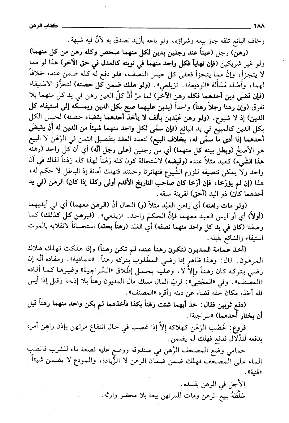 (أخذ عمامة المديون لتكون رهنا عنده لم تكن رهنا) وإذا هلكت تهلك هلاك المرهون.