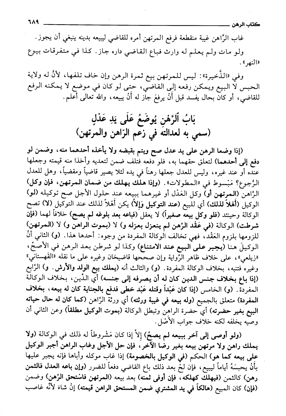 باب الرهن يوضع على يد عدل (سمى به لعدالته في زعم الراهن والمرتهن)