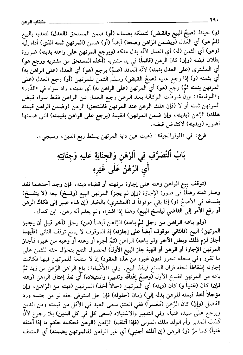 باب التصرف في الرهن والجناية عليه وجنايته أي الرهن على غيره (توقف بيع الراهن وهنه على إجارة مرتهنه أو قضاء دينه، فإن وجد أحدهما نفذ
