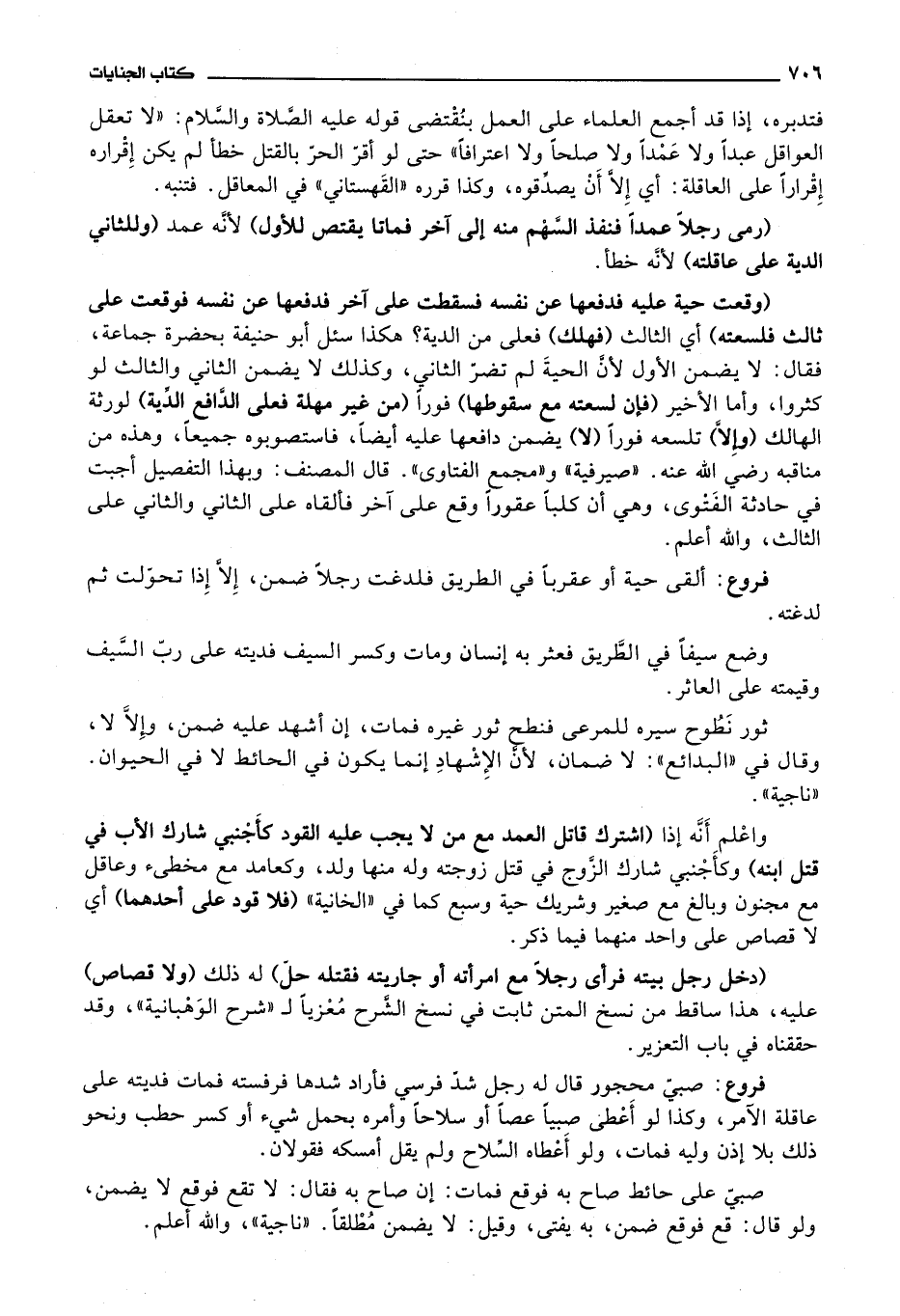 يضمن الاول لان الحية لم تضر الثاني، وكذلك لا يضمن الثاني والثالث لو كثروا، وأما الاخير (فإن لسعته مع سقوطها) فورا (من غير مهلة فعلى الدافع الدية) لورثة الهالك (وإلا) تلسعه فورا (لا) يضمن دافعها عليه أيضا، فاستصوبوه جميعا، وهذه من مناقبه رضي الله عنه.