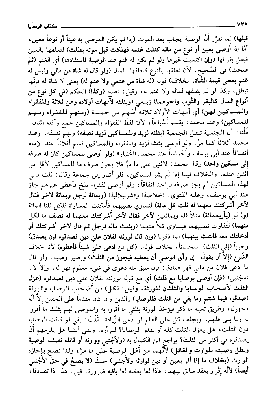 وكذا لو لم يضفها لماله ولا غنم له، وقيل: تصح (وكذا) الحكم (في كل نوع من أنواع المال كالبقر والثوب ونحوهما) زيلعي (وبثلثه لامهان أولاده وهن ثلاثة وللفقراء والمساكين لهن) أي أمهات الاولاد ثلاثة أسهم من خمسة (ومنهم للفقراء وسهم للمساكين) وعند محمد: يقسم أسباعا، لان لفظ الفقراء والمساكين جمع وأقله اثنان.