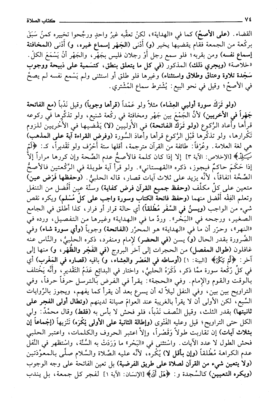 ورد ما في الهداية وغيرها من التفصيل، ورده في النهر، وحرر أن ما في الهداية هو المحرر (الفاتحة)