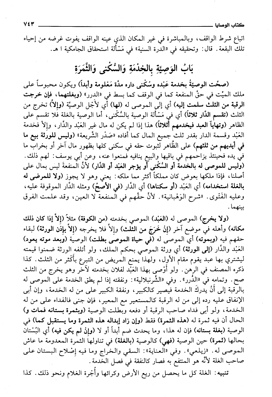 باب الوصية بالخدمة والسكنى والثمرة
