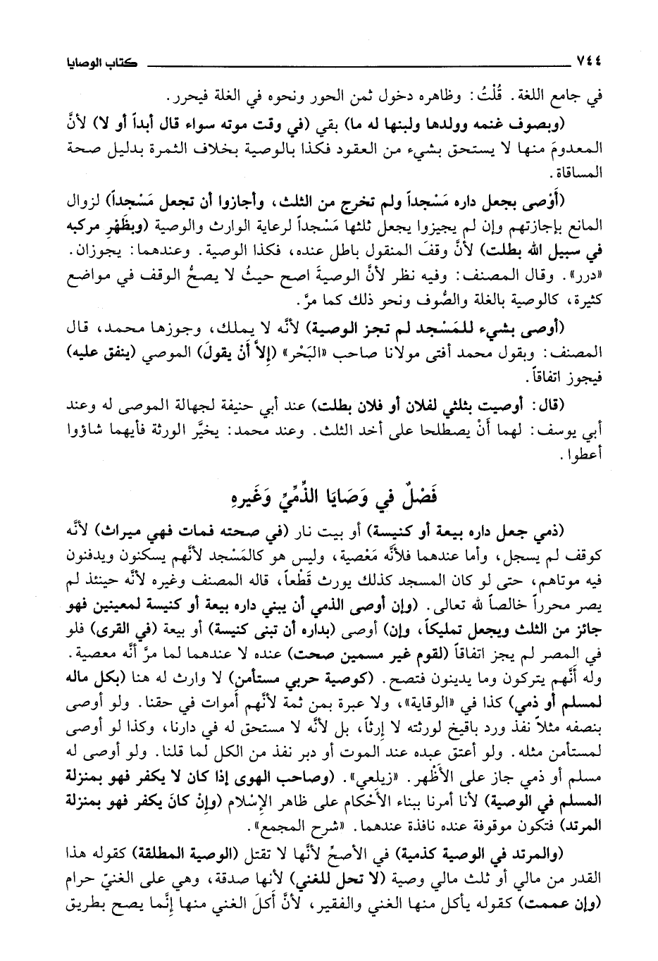 فصل في وصايا الذمي وغيره (ذمي جعل داره بيعة أو كنيسة) أو بيت نار (في صحته فمات فهي ميراث)