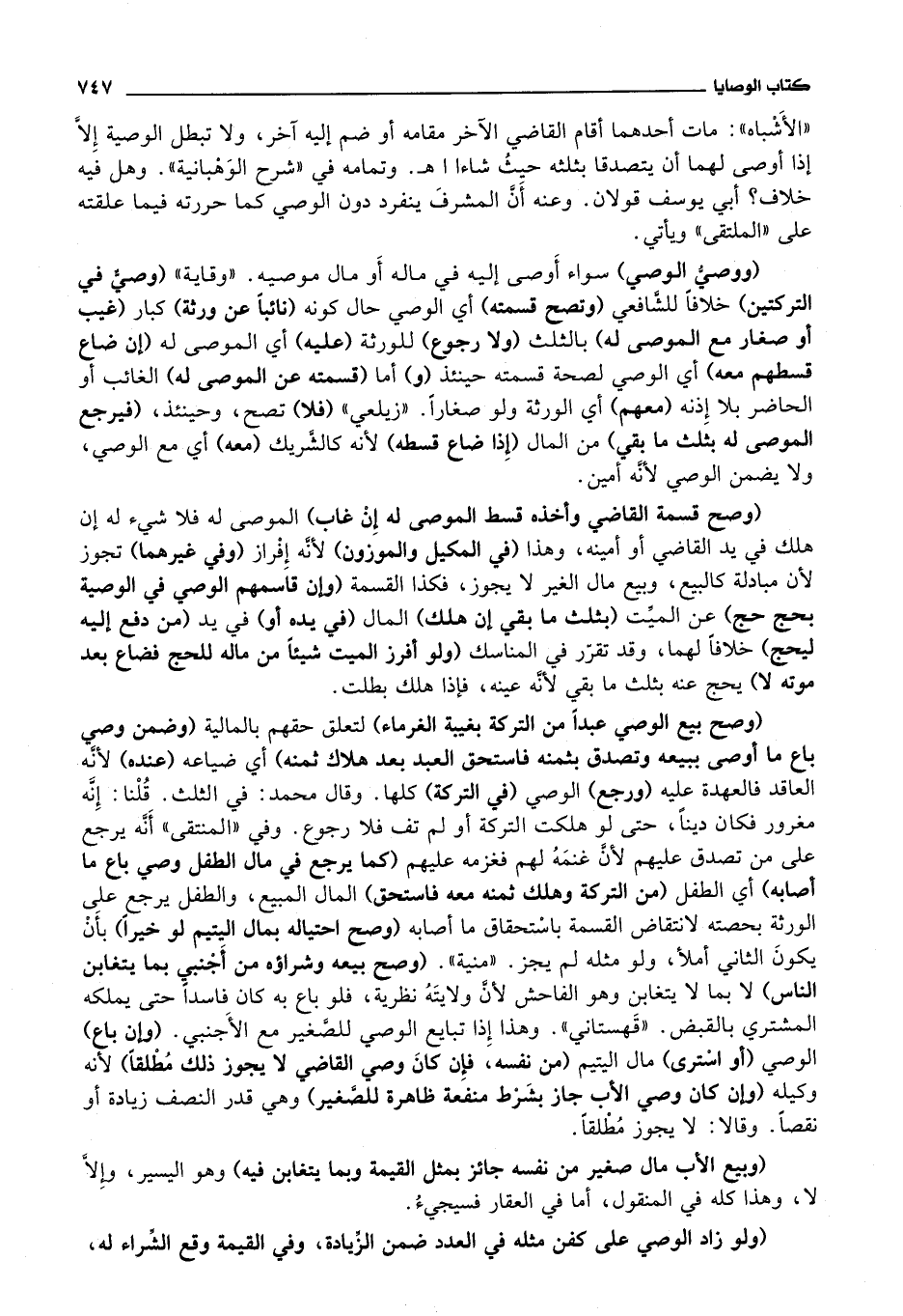 وقاية (وصى في التركتين) خلافا للشافعي (وتصح قسمته) أي الوصي حال كونه (نائبا عن ورثة) كبار (غيب أو صغار مع الموصى له) بالثلث (ولا رجوع) للورثة (عليه) أي الموصى له (إن ضاع قسطهم معه) أي الوصي لصحة قسمته حينئذ (و) أما (قسمته عن الموصى له) الغائب أو الحاضر بلا إذنه (معهم) أي الورثة ولو صغارا.