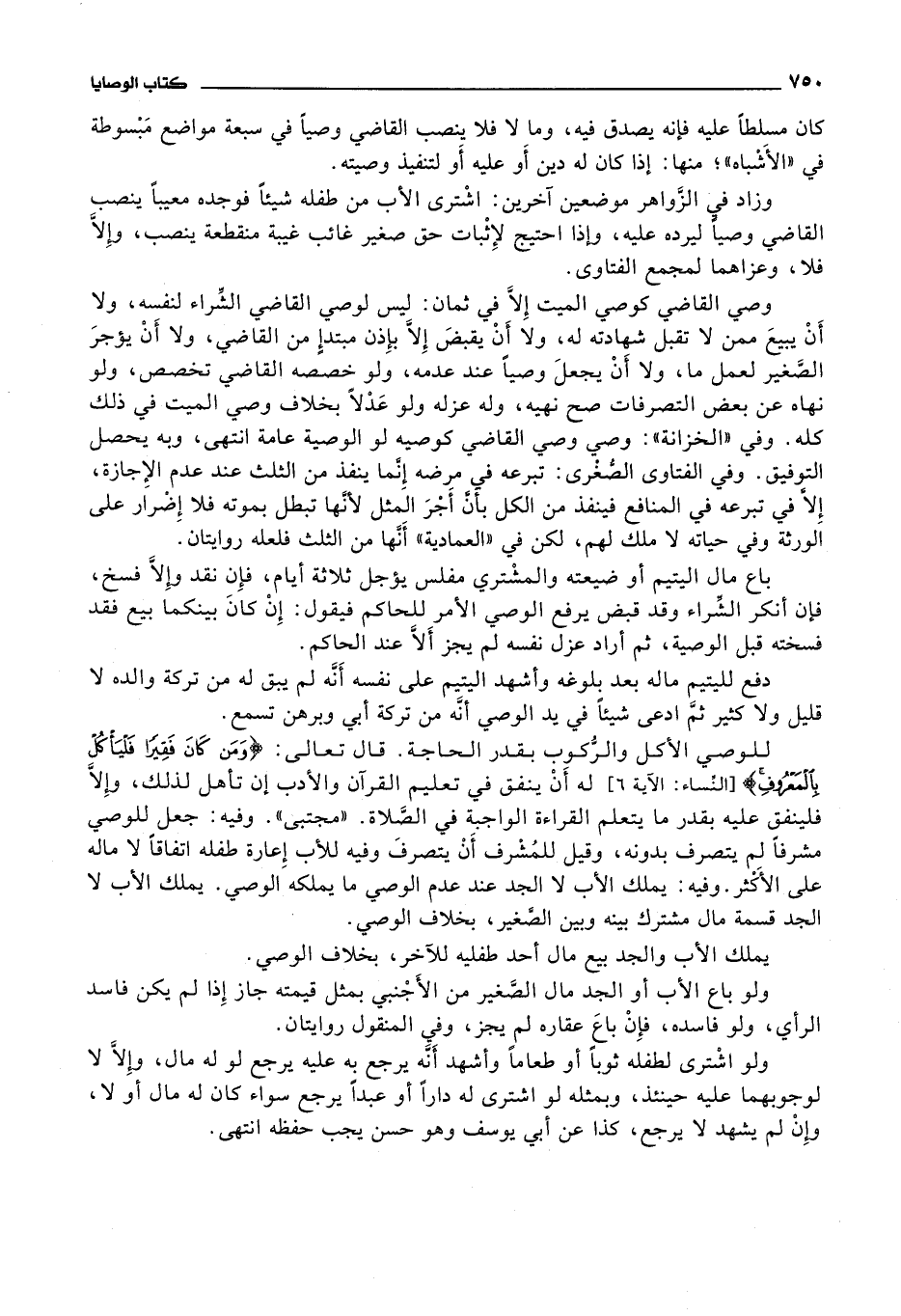 كان مسلطا عليه فإنه يصدق فيه، وما لا فر ينصب القاضي وصيا في سبعة مواضع مبسوطة في الاشباه: منها: إذا كان له دين أو عليه أو لتنفيذ وصيته.