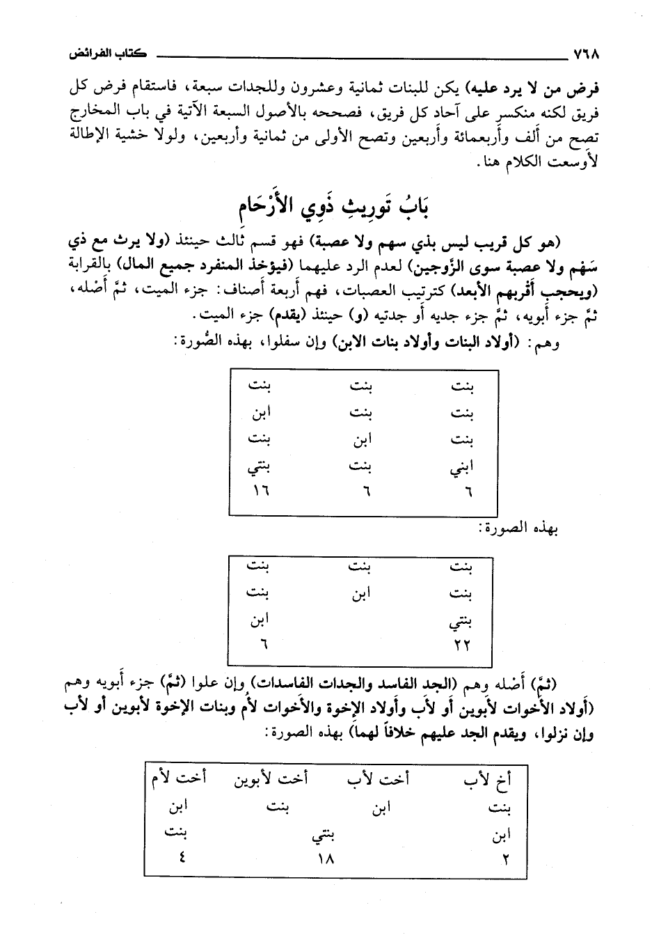 بهذه الصورة: بنت بنت بنت بنت ابن بنت بنتي ابن 22، 6 (ثم) أصله وهم (الجد الفاسد والجدات الفاسدات) وإن علوا