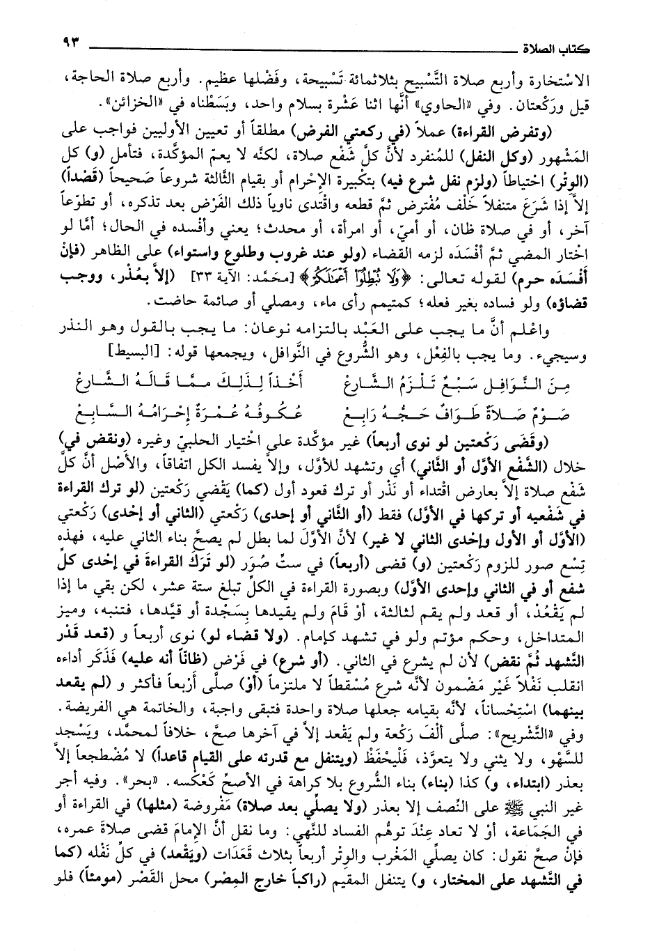 (الوتر) احتياطا (ولزم نفل شرع فيه) بتكبيرة الاحرام أو بقيام الثالثة شروعا صحيحا (قصدا) إلا إذا شرع متنفلا خلف مفترض ثم قطعه واقتدى ناويا ذلك الفرض بعد تذكره، أو تطوعا آخر، أو في صلاة ظان، أو أمي، أو امرأة، أو محدث: