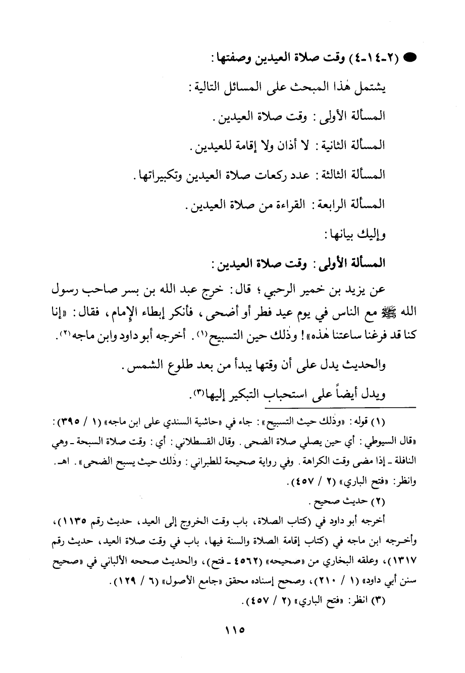 - (2-14-4) وقت صلاة العيدين وصفتها: