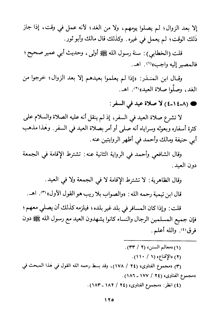 - (8-14-4) لا صلاة عيد في السفر: