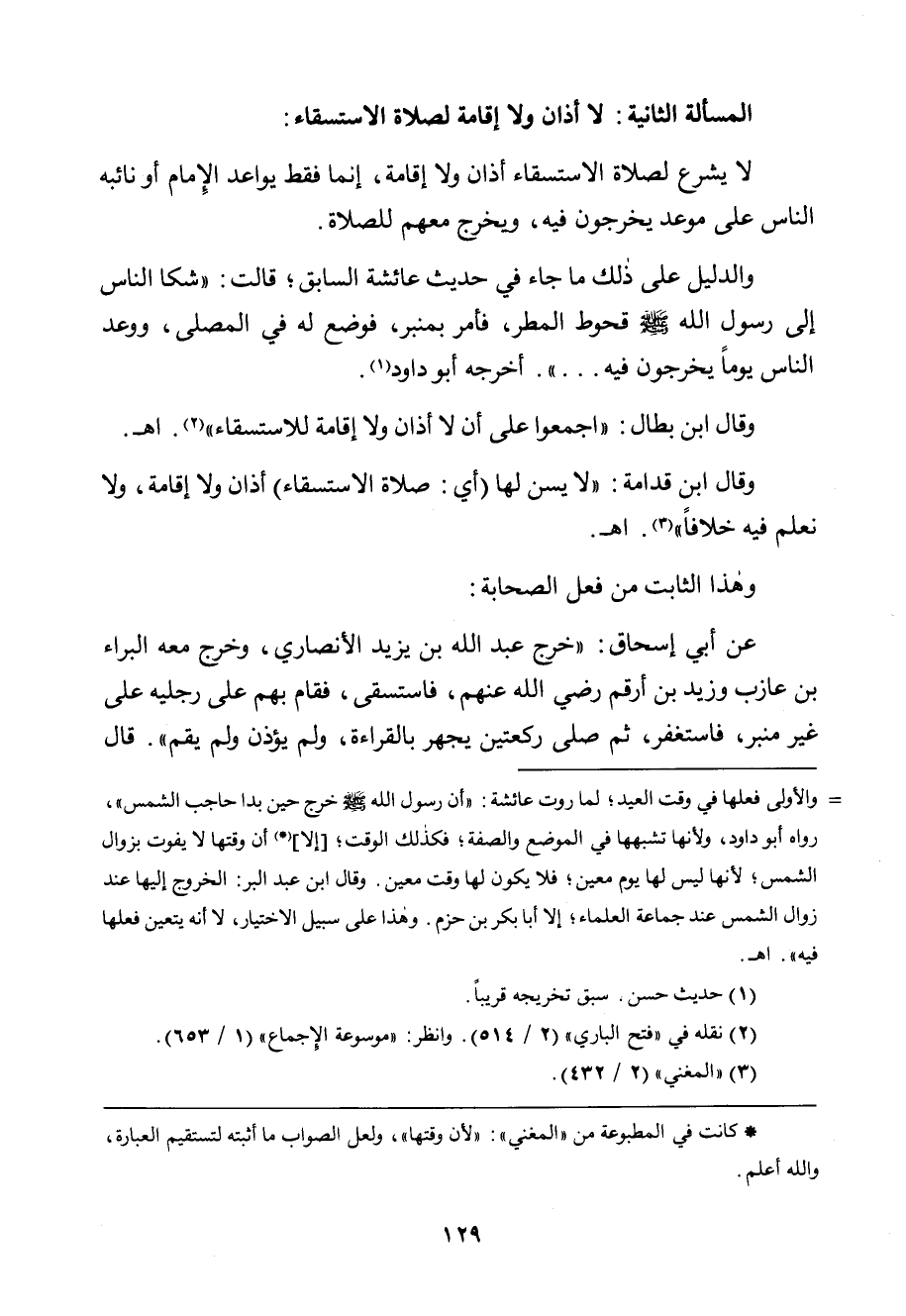 وقال ابن قدامة: " لا يسن لها (أي: صلاة الاستسقاء) أذان ولا إقامة، ولا نعلم فيه خلافا" (¬3) . اهـ.