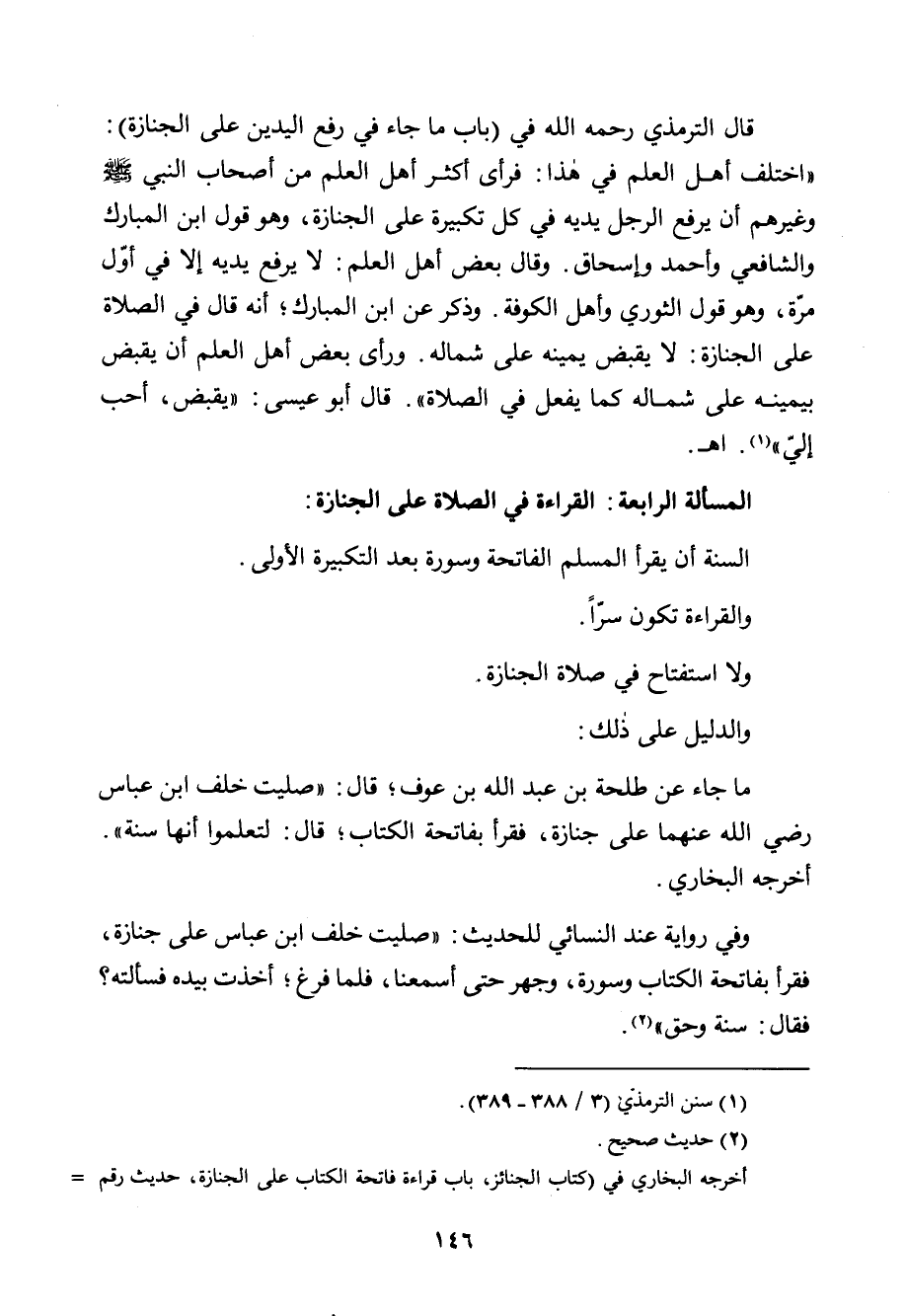 المسألة الرابعة: القراءة في الصلاة على الجنازة:
