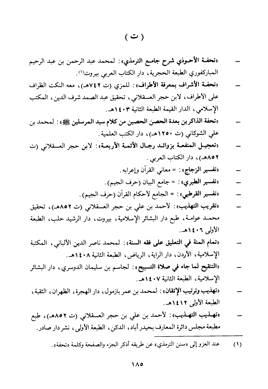 (¬1) عند العزو إلى " سنن الترمذي" عن طريقه أذكر الجزء والصفحة وكلمة "تحفة".