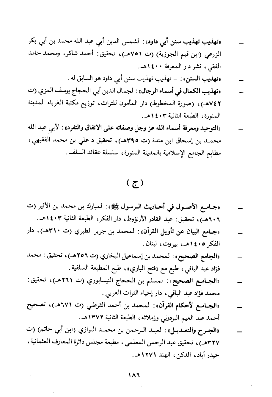 - " تهذيب الكمال في أسماء الرجال": لجمال الدين أبي الحجاج يوسف المزي (ت742هـ) (صورة المخطوط) دار المأمون للتراث، توزيع مكتبة الغرباء المدينة المنورة، الطبعة الثانية 1403هـ.