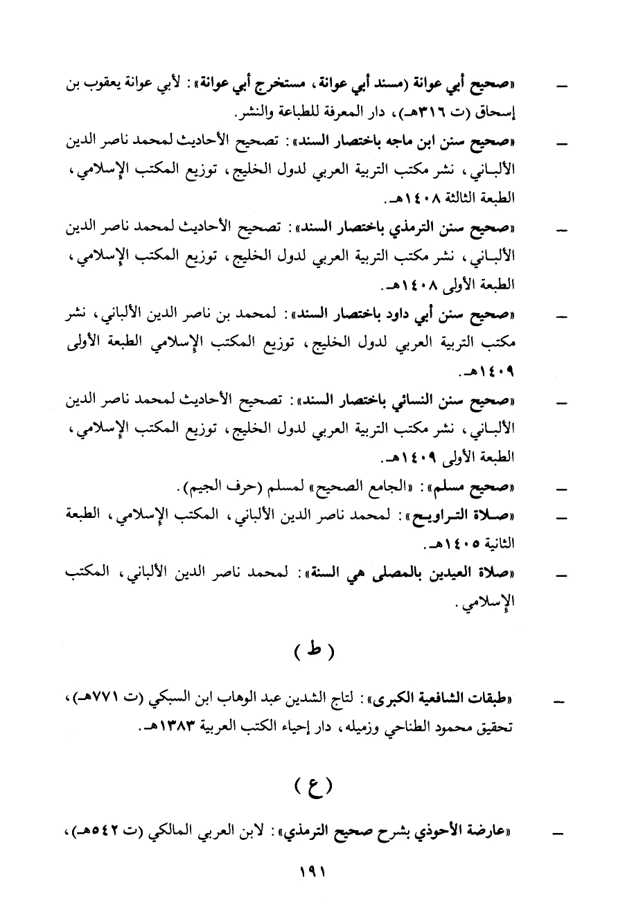 - " صحيح سنن الترمذي باختصار السند": تصحيح الأحاديث لمحمد ناصر الدين الألباني، نشر مكتب التربية العربي لدول الخليج، توزيع المكتب الإسلامي، الطبعة الأولى 1408هـ.