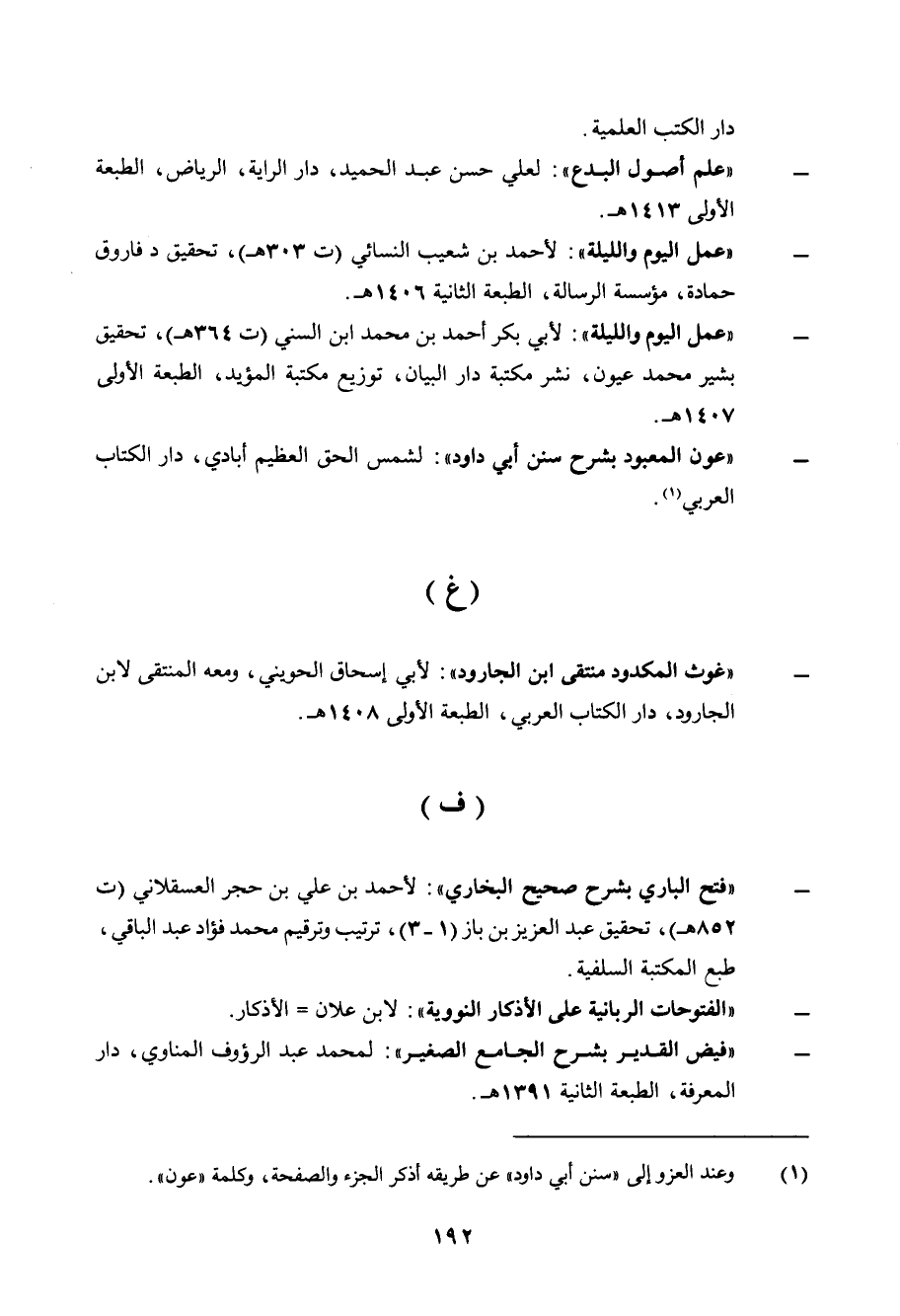 - " عمل اليوم والليلة ": لأحمد بن شعيب النسائي (ت303هـ) ، تحقيق د. فاروق حمادة، مؤسسة الرسالة، الطبعة الثانية 1406هـ.